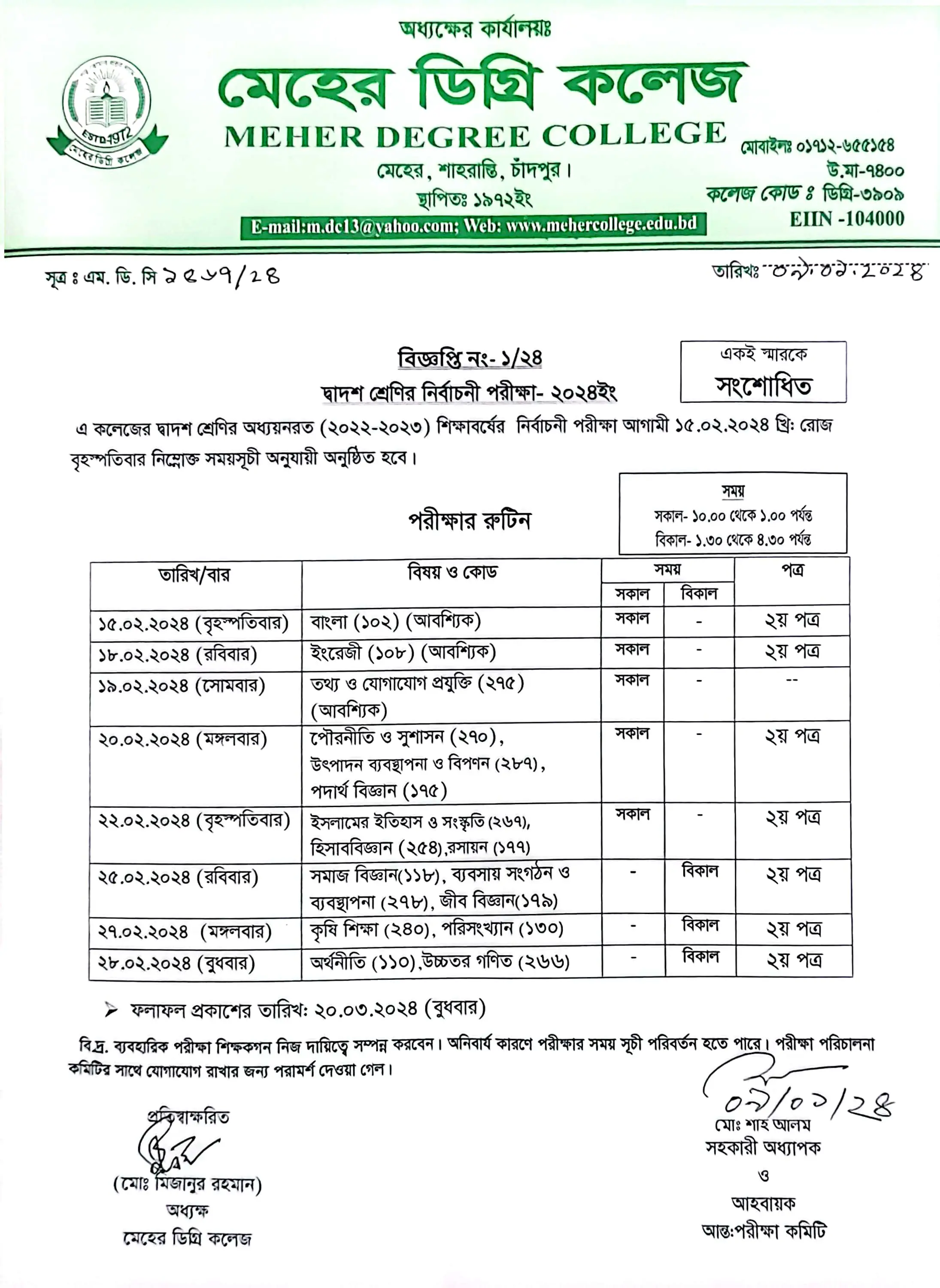 বোর্ড রেজাল্ট